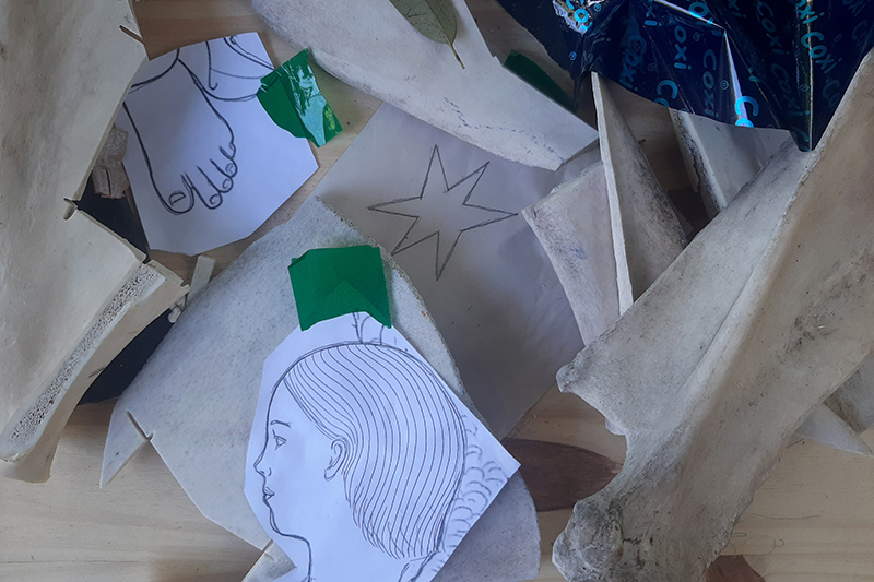 Tanto los contornos como las superficies de los objetos, me permitieron crear imágenes que emergieron de fragmentos. El resultado fue una pequeña colección de características reales, inventadas y ficcionadas de esos objetos encontrados.